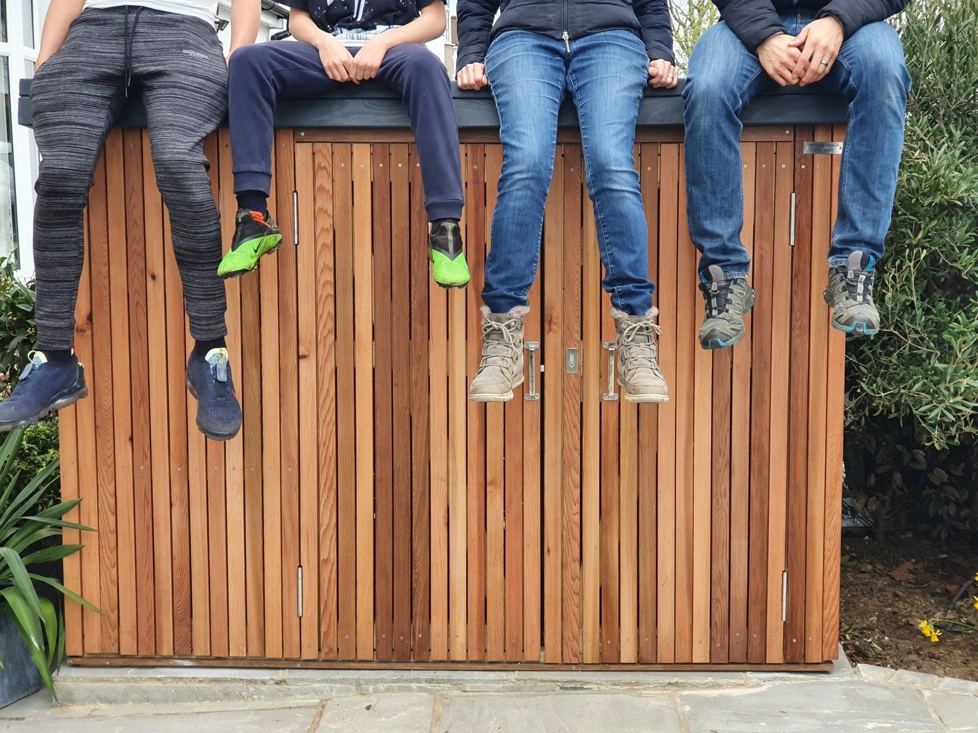 'We love our cycle shed. Friends who visit the house always comment on how nice it looks and we often see passers by walking on the drive to get a closer look. I particularly love the seedy roof! Ian was a pleasure to work with, constructing most parts off site and putting it up within the day. All in all, I am a very happy customer!'